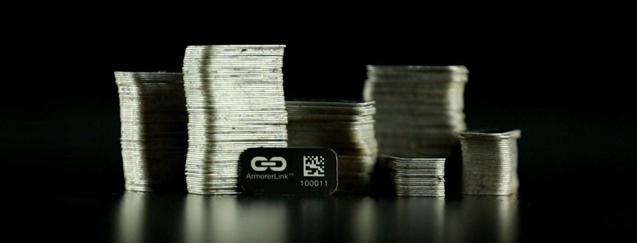 Mil-Spec. Asset Label Data Matrix Annealed Aluminum 0.60” W x 0.30” Branded ArmorerLink Logo, 250 label pack, sequentially numbered.